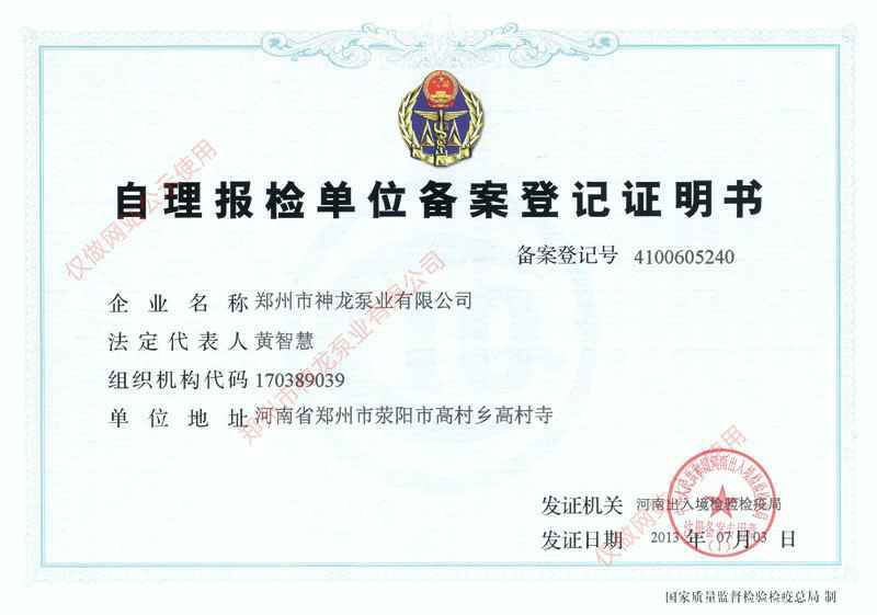 出口自理报检登记证书